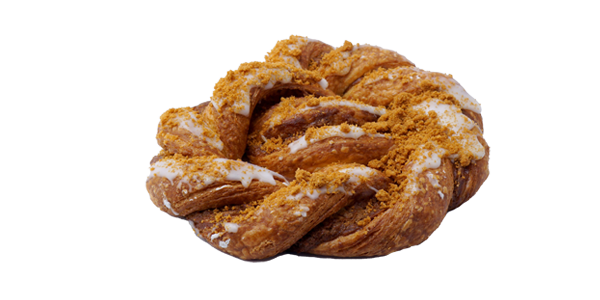 CompositionPâte à bretzel, fourrage spéculoos, fondant.