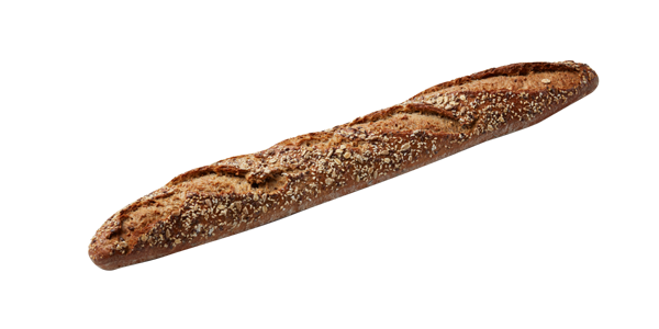 CompositionBaguette froment avec sésame, graines de lin et tournesol, son de froment - Céréales: 93% froment, 2,5% orge, 2,5% millet, 2% seigle
