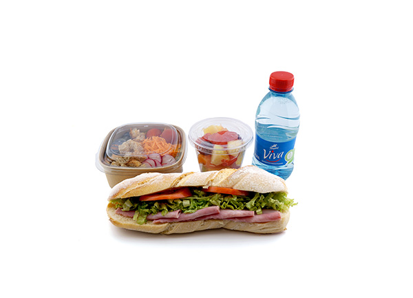 CompositionLe Jambon : ciatwist, beurre, jambon cuit, tranches de tomate, salade lollo verte.