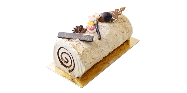 CompositionBiscuit, crème beurre moka, décor chocolat, décor sucre, cacao.