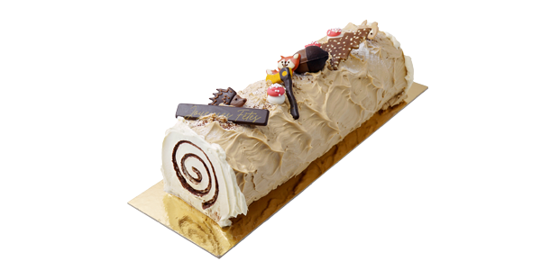 CompositionBiscuit, crème beurre moka, décor chocolat, décor sucre, cacao.
