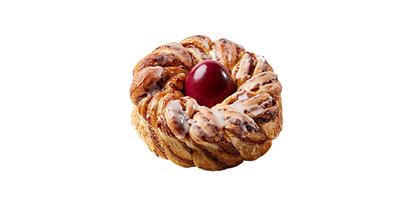 CompositionPâte à bretzel, fourrage chocolat-noisette-cannelle, fondant, oeuf dur coloré.