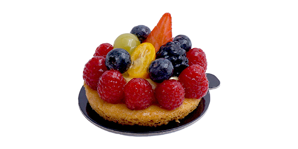 CompositionSablé breton, crème pâtissière, assortiments de fruits.