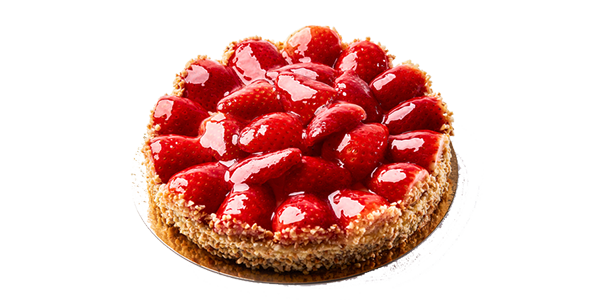 CompositionBiscuit, crème pâtissière, fraises, amandes hachées.
