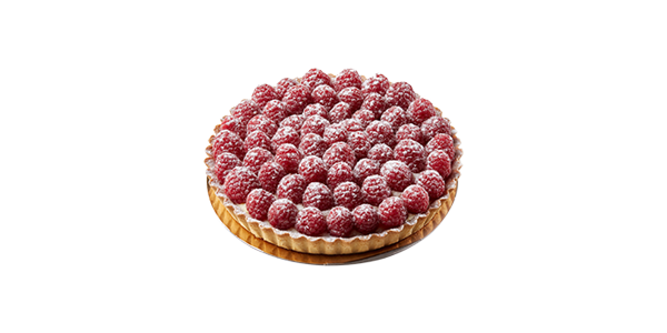 CompositionPâte sucrée, crème pâtissière, framboises fraîches.