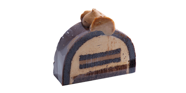 CompositionGénoise cacao, praliné, chocolat au lait et noisettes.