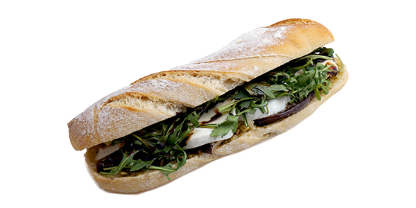 CompositionCiatwist, Pesto Alla Genovese, Aubergines Grillées, Mozzarella, Jeunes Pousses Roquettes, Creme Balsamique, Pignons de Pin.