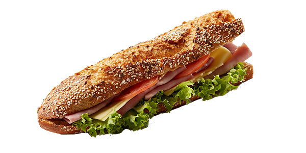 Composition1/2 Baguette Céréales, beurre, jambon cuit, fromage, tomate, salade