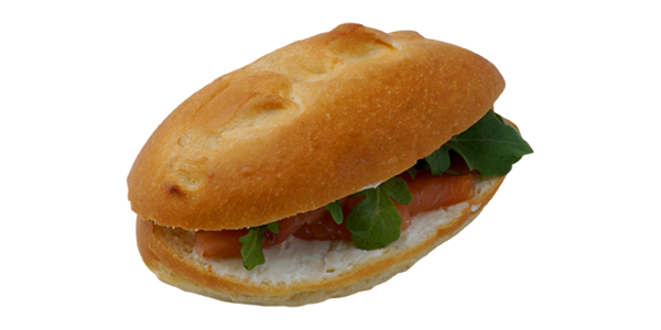CompositionPP lait 60g, saumon, fromage philadelphia, roquette.