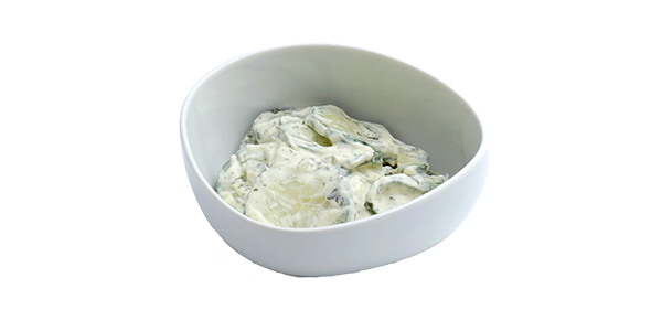 CompositionConcombre, crème, menthe, assaisonnement.