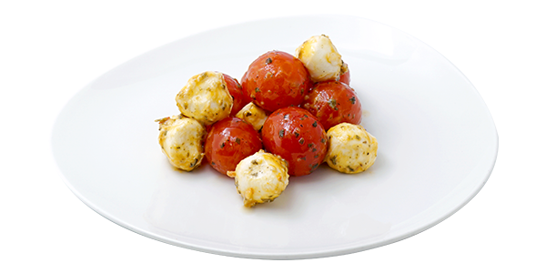 CompositionTomate cerise, Mozarella, sauce italienne, huile de tournesol, sel, poivre.