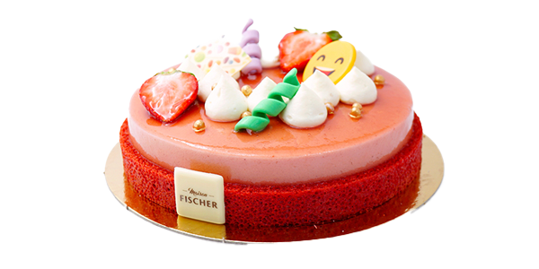 CompositionMousse et confit fraises, biscuit amandes, croquant au chocolat blanc.